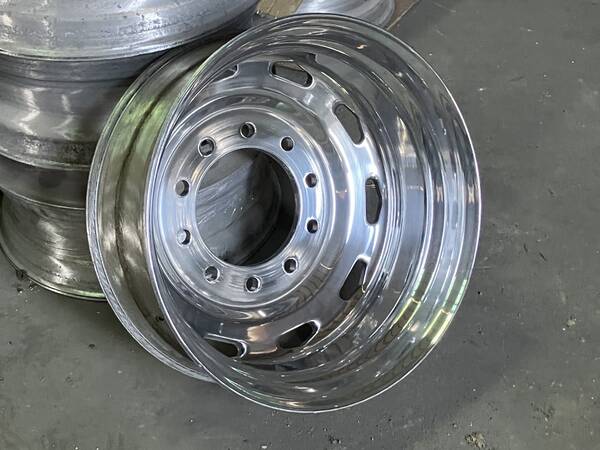 24.5″ x 8.25″ Freightliner hub pilot SHOW POLISHED aluminum rims.